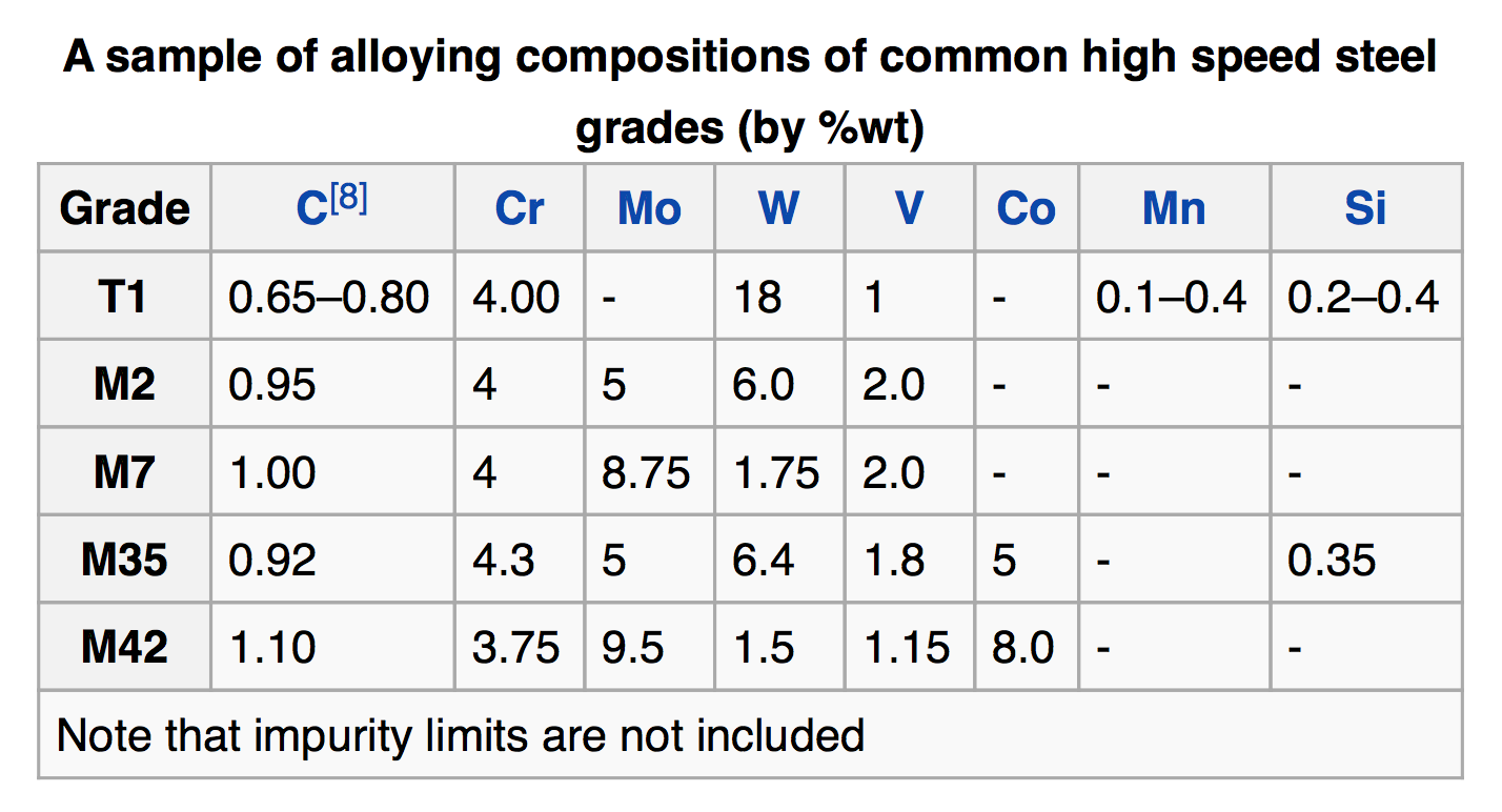 ในอดีตผู้เขียนเข้าใจว่า ส่วนผสม Co ที่อยู่ใน HSS นั้นเป็นตัวกำหนดคุณภาพ HSS ยิ่งมากยิ่งดีขึ้น แต่ก็ไม่ควรมากเกินไป พอได้มาศึกษาทำความเข้าใจมากขึ้น ก็ถึงได้รู้ว่า HSS นั้นมีหลายสูตรผสม บางตัวไม่มีปริมาณ Co ผสมอยู่เลย
