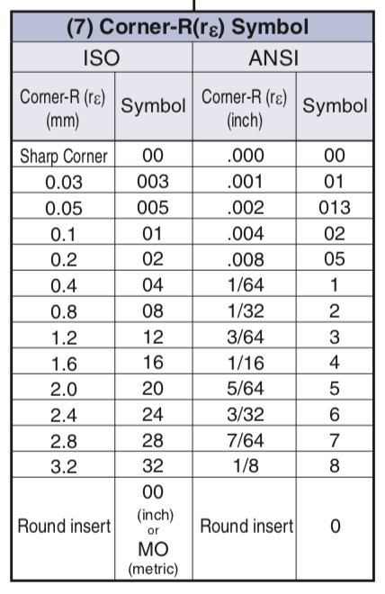ตัวเลขสองหลักสุดท้ายก็คือขนาดของมุมมน R ที่เราได้เรียนรู้กันมาก่อนหน้านี้แล้ว ซึ่งทำให้เราสามารถระบุได้คร่าวๆว่าเม็ดมีดนั้น ช่วยให้ได้ความเรียบผิวตามที่ต้องการพอได้ไหม การหักเศษจะดีขึ้นไหมถ้าเปลี่ยนมุมมนเม็ดมีด สามารถตามไปอ่านบทความย้อนหลังของมุมมน R ที่มีผลกระทบกับชิ้นงาน